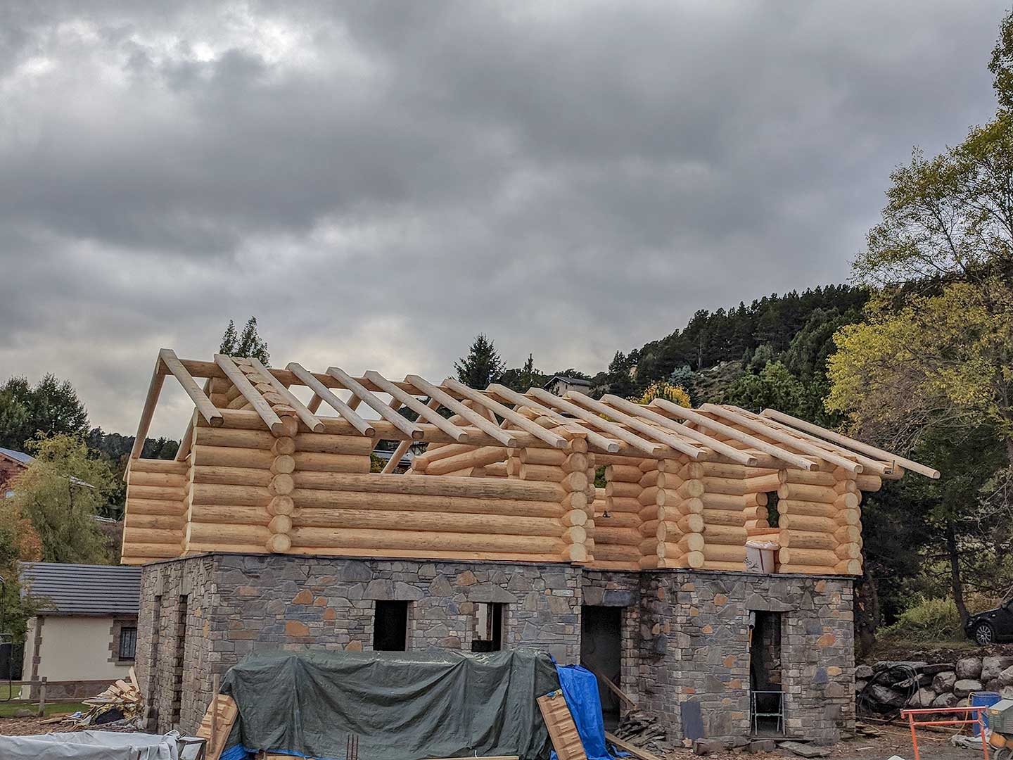 Casa de lemn rotund. In momentul in care pasiti inauntru, veti descoperi un spatiu care integreaza armonios zona de living, sala de mese si bucataria. Casa este compusa din 3 camere, dintre care 2 sunt dormitoare, si dispune de 2 bai pentru confortul dvs. In plus mai dispune si de o terasa exterioara acoperita, placat cu pietre naturale, perfecta pentru relaxare si socializare.